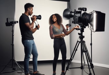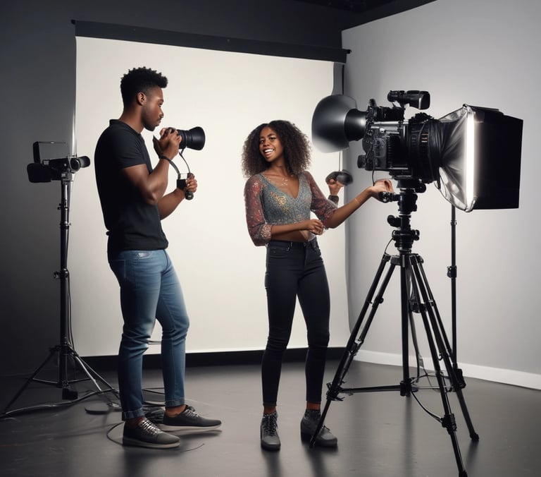 Professional lighting setup and versatile backdrops for photography sessions, video production, and creative projects.